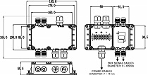 Waterproof connection box for LDP series and other outdoor DMX-projectors.