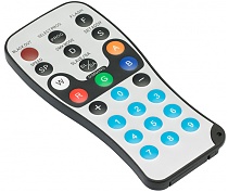 PAR64 LED Spotlight with 18 five-color 10 W LEDs with display, input / output power and infrared remote control.