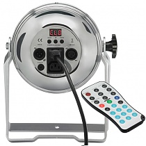 PAR64 LED Spotlight with 18 five-color 10 W LEDs with display, input / output power and infrared remote control.Equipped with 18 high power ...